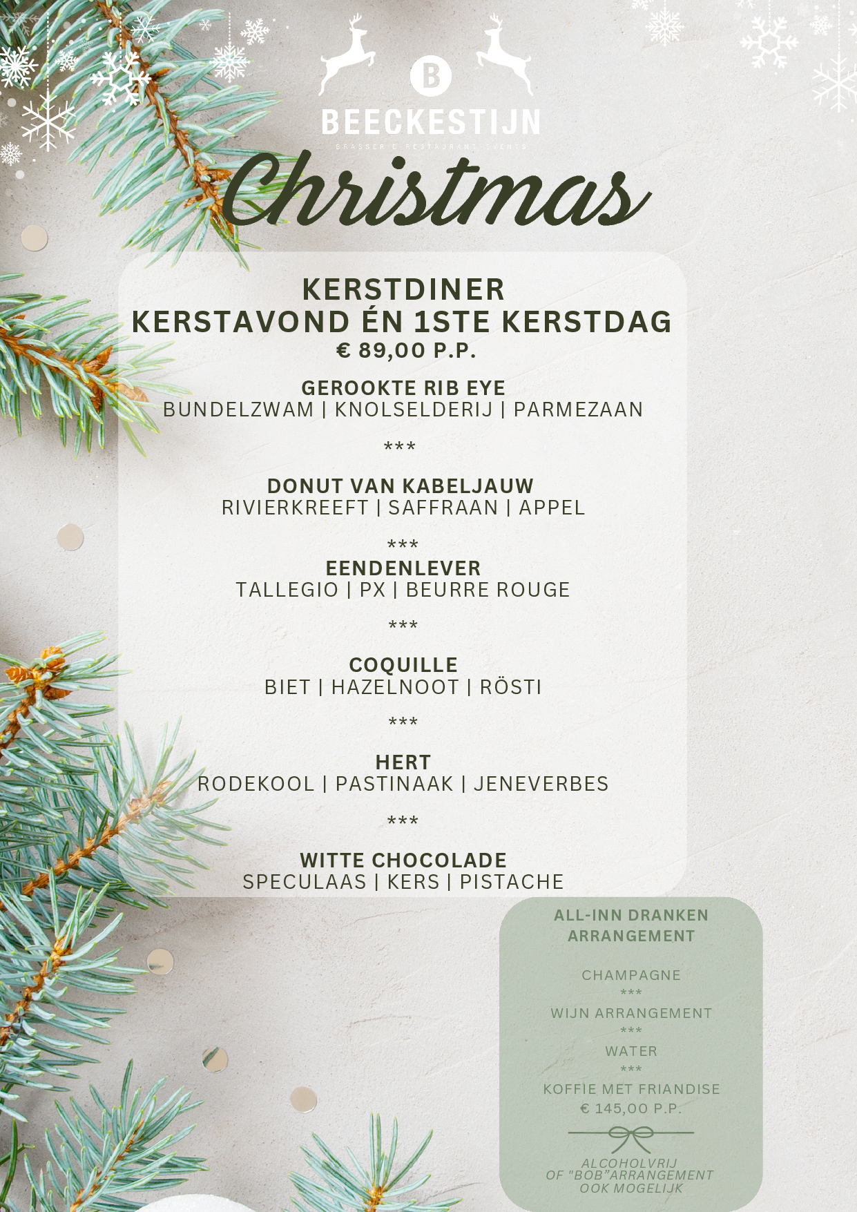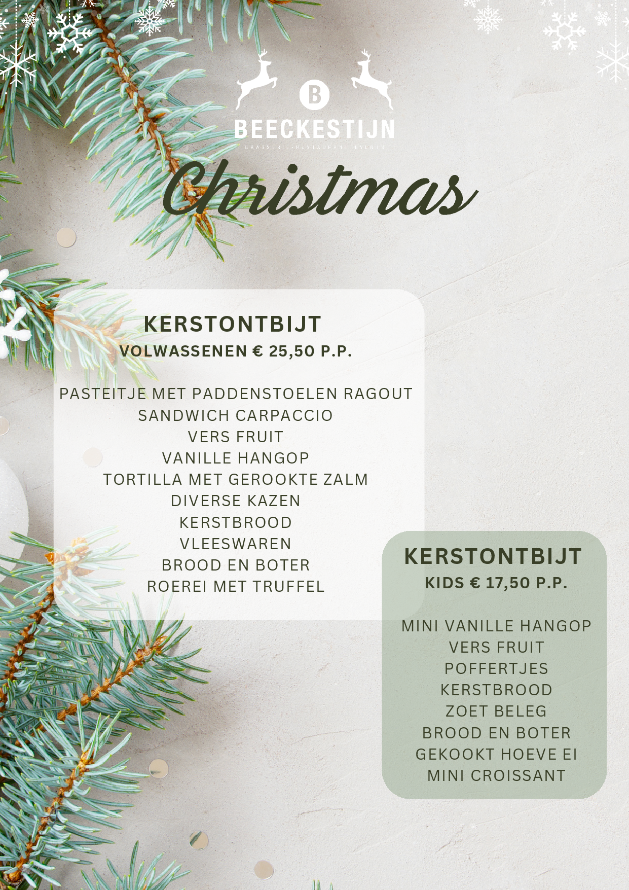 Graag vieren we met u Kerst op Kerstavond én Eerste Kerstdag.